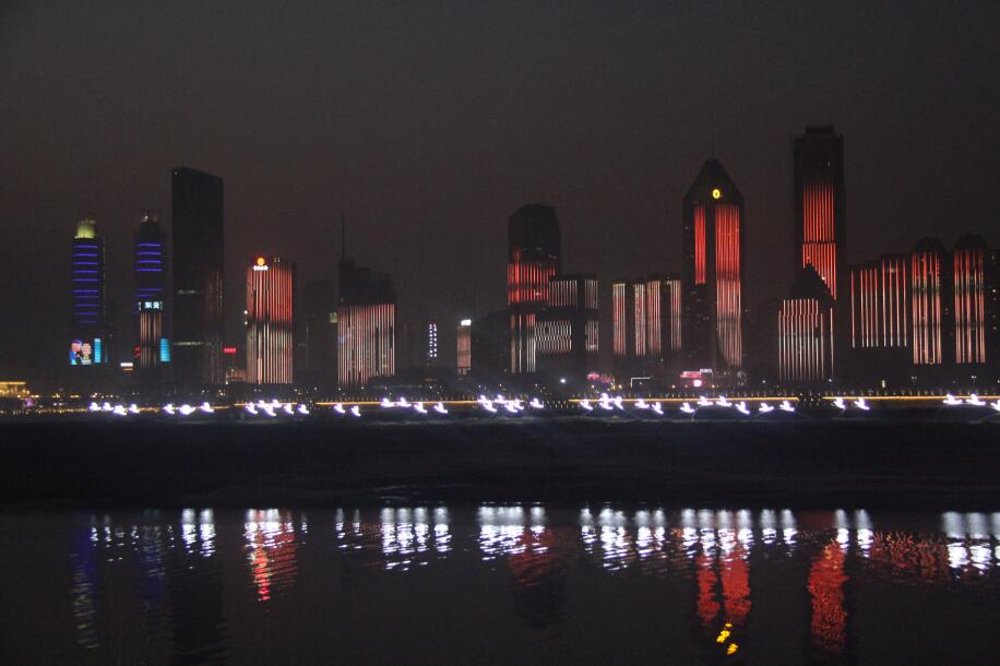 贛江西岸新城區(qū)特意設(shè)計(jì)了“西山積翠”與“落霞孤鶩”,還有活靈活現(xiàn)的 “高山流水”,強(qiáng)烈的視覺效果撲面而來。伴隨著燈光的變換,利用建筑物的高低不一,呈現(xiàn)山形的基礎(chǔ)照明效果,無數(shù)只“飛鳥”如繁星般從江邊騰空而起,“落霞與孤鶩齊飛”的場(chǎng)景躍然眼前。