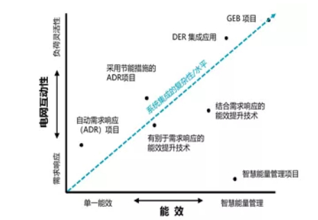 從而將建筑節能的技術路徑從單一的能源效率維度擴展到能源效率與電網互動性兩個維度。建筑物節能技術將從單純的能效提升技術和需求響應技術開始,將產生采用節能措施的需求響應技術與結合需求響應的能效提升技術等結合起來,并進一步融合形成分布式能源綜合利用技術和電網友好型建筑技術(Grid Efficiency Building)。