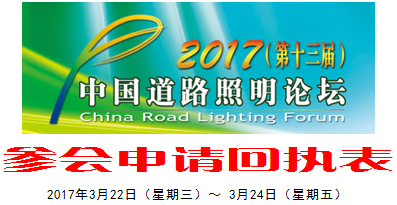 收到邀請函后,請您填寫《2017中國道路照明論壇(第十三屆)參會申請回執(zhí)表》傳真或寄回組委會會務(wù)組,以便辦理代表證及住宿預(yù)訂有關(guān)事宜。組委會收到您的《參會申請回執(zhí)表》進(jìn)行資格審定,合格后即發(fā)出報到用《正式報到函》。