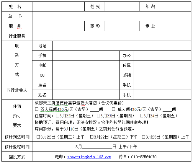 3、預(yù)訂住宿的回執(zhí)接收截止時間為2017年3月10日,逾期者不能保證提供客房。請予以重視!