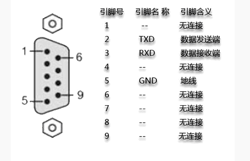 232端的db9接口定義就比較簡單了,因為db9端只是232接口所以引腳1、4、6、7、8、9沒有實際意義,不進行連接和數據傳輸,剩余的2和3分別是TXD和RXD,代表數據的發送端和接收端,5是GND代表的地線。具體意義可以參見下圖。