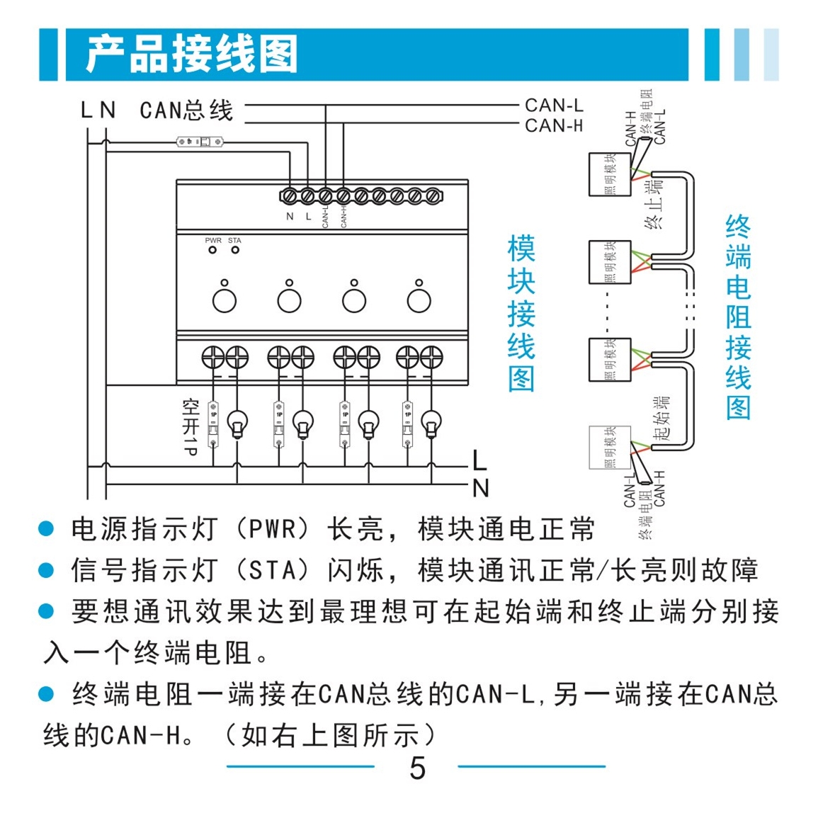 3. 調(diào)光模塊的每個負載輸出配置具有過載和短路保護的空氣開關(guān)。
