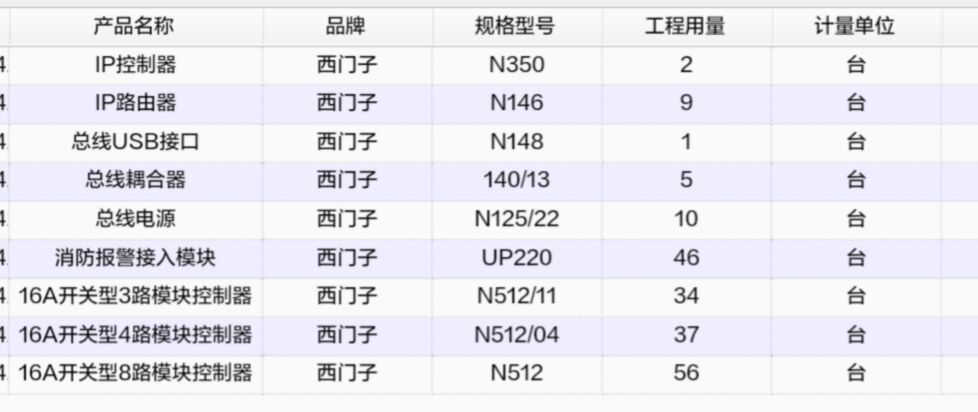 N510/04、 N512、N512C、N562照明控制模塊開關執行器:N512/11 16A開關型3路模塊控制器、N512/04 16A開關型4路模塊控制器、N512 16A開關型8路模塊控制器、N512/21、N502、N511/02、N510/03、N510/04、N512、N512C、N562、N567、N567/11、N567/12、N567/21、UP511、UP511/10、UP562、UP562/11、GE561、調光執行單元:N528/02、N527/02、UP525/01、UP525/11、N525/02、N526/02、N526E02、電動遮陽簾執行器:N523/11、N522/03、N523/02、N523/03、N523/04、N524、N521、UP520/01、UP525/11、GE521風機盤管控制設備:REG540、REG540/11、M540、信號輸入模塊:N670、UP220/02、UP220/03、UP220/13、GE262、N260、N261、N262E、N263E01、N262E11、N263E11、N264E11、定時器:N371、N372 、N373觸摸屏:UP588/01、UP588/11、UP588/21、總線電源:N125/21、N125/11、N125/01、手持*:S425/21、3S425/21、3S425/71、RS232接口:N350 IP控制器、UP146/11、N148/04、N148/02、USB接口:UP146E/11、N148/11系統網關:AP140/02、AP140/22、N525E、N141、GE141、140/13總線耦合器
